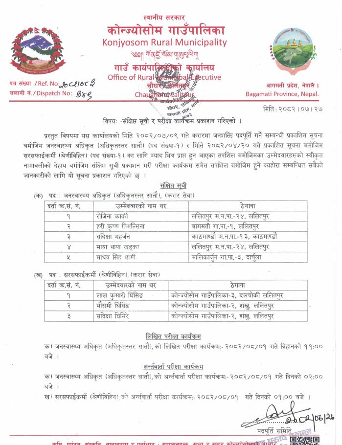 संक्षिप्त सूची तथा परीक्षा कार्यक्रम प्रकाशन सम्बन्धि सूचना PDF