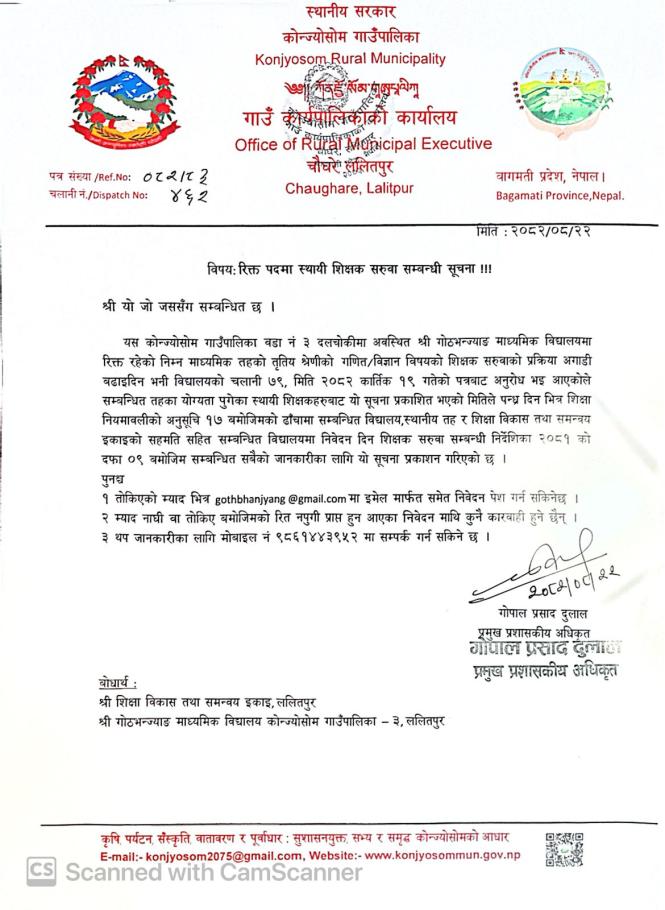 रिक्त पदमा स्थायी शिक्षक सरुवा सम्बन्धी सूचना !!!