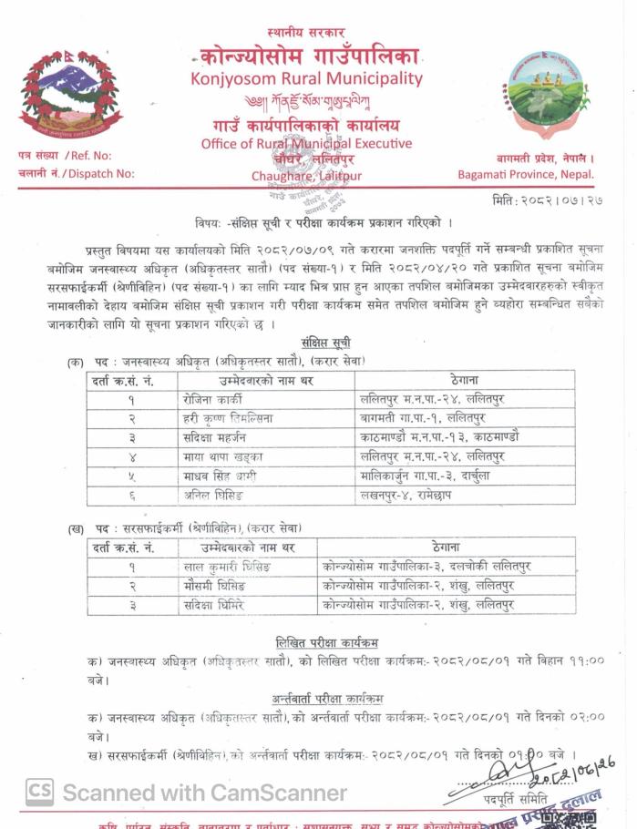 संक्षिप्त सूची र परीक्षा कार्यक्रम
