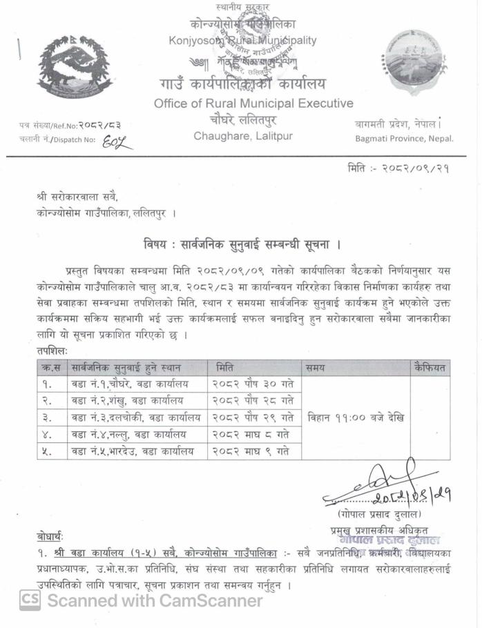सार्वजनिक सुनुवाई सम्बन्धि सूचना